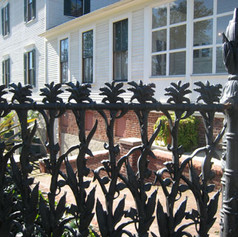 While most sources on the Wood & Perot cornstalk fences mention these two New Orleans homes, there is another example of this fence currently located at the Banning Museum in Wilmington, CA. Phineas Banning, known as the “the Father of the Port of Los Angeles,” built this 23-room residence in 1864. His descendants lived in the mansion until 1925, and later the residence, stagecoach barn, and the surrounding 20 acres of parkland were acquired by the City of Los Angeles and turned into a museum. The cornstalk fence was not donated to the Banning Museum until 1982.