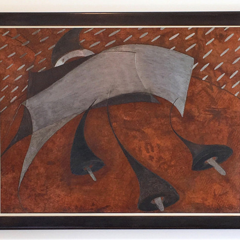 The Metal Museum currently has two pieces by Jan Brooks in our collection: a spatula and a wall piece. The spatula was made in 1979 and included in one of the first exhibitions at the Metal Museum: Everyday Metal, on view October 6, 1979 - January 6, 1980. At the conclusion of the exhibition, the Museum purchased the spatula from Brooks directly. The spatula is made of steel, silver, and wood and features a delicately-patterned blade with a central heart-shape made of silver. It is currently on display in our Visible Storage Gallery, along with some other contemporary utensils. The same year Brooks made “Tornadic Vessel,” she created this wall piece called “Tornadic Drawing.” It is made from steel with rust and a chemical coloration and includes abstract images of tornadoes and rain. Brooks donated the piece to the Museum in 2007, and it is included in our Selections from the Permanent Collection exhibition in the Library Learning Space. To see more of her work, check out her entry in the SNAG Slide Archive.